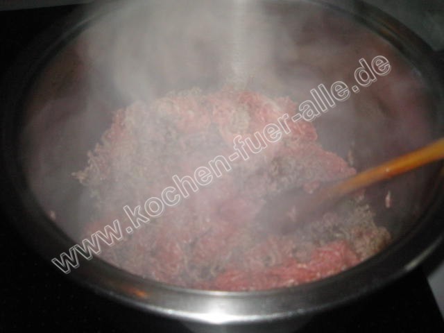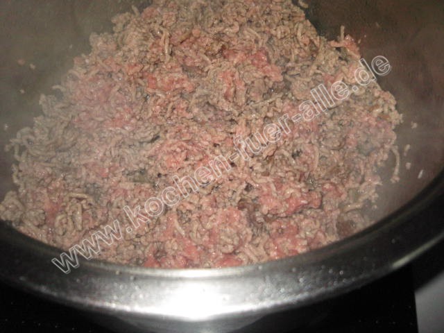 Klein gehackte Zwiebeln zugeben. Gut anbraten.