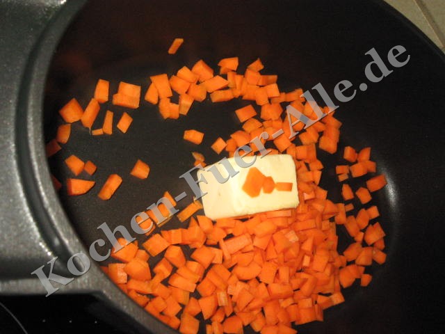 Geschellte in Würfel geschnittene Möhren zugeben