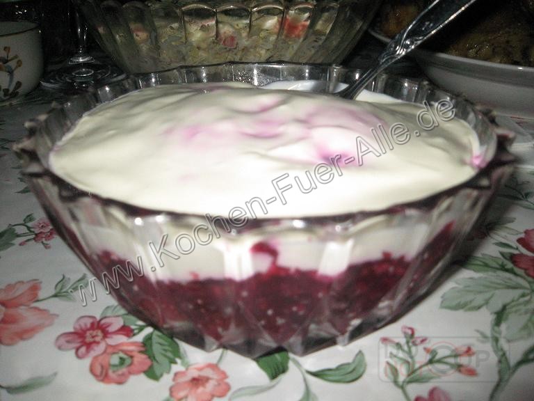 (Bisschen Rote Bete für Dekor und oberste Schicht lassen). Alle Zutaten in Schale mischen mit Öl, Mayonnaise und Walnüsse abschmecken.