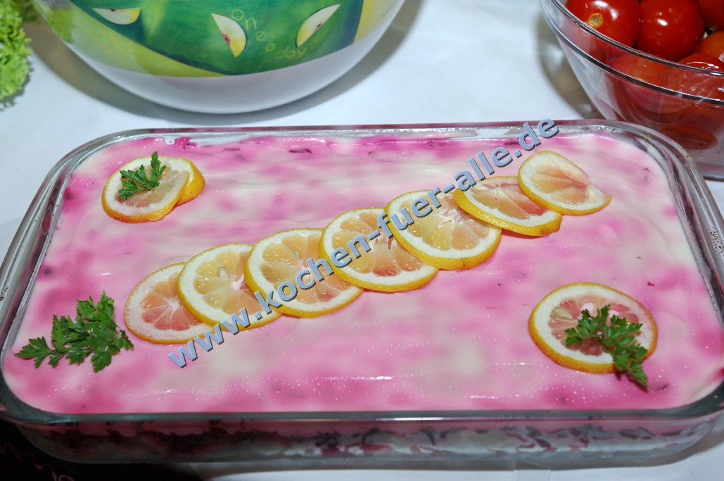 ist das etwa das Rezept für den Ukrainischen Salat Pid-shuboyu ? Sieht etwas anders aus, wie ich in mal gegessen habe. Bin auf der Suche nach dem Rezept, möchte diesen tollen Salat nächstes Wochenende auf der Hochzeit meines Bruders zubereiten.