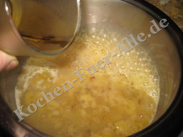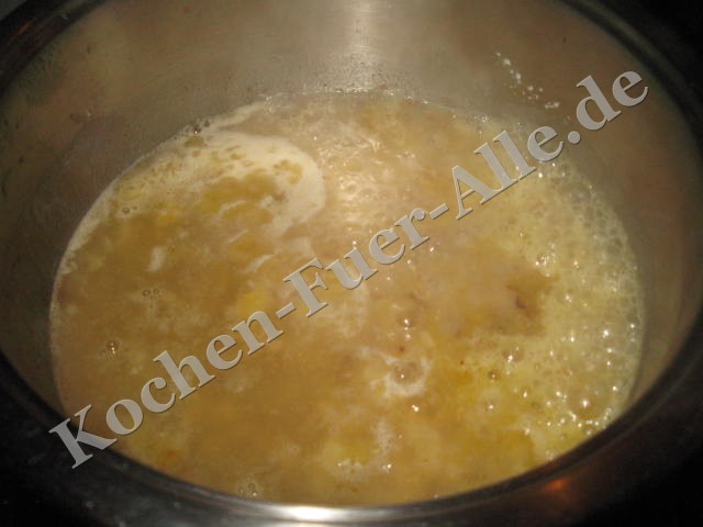 leicht aufkochen abschmecken mit Salz Pfeffer und Zucker.