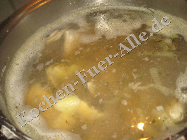 Kartoffeln zugeben und kochen bis, Kartoffeln so weit fertig werden.