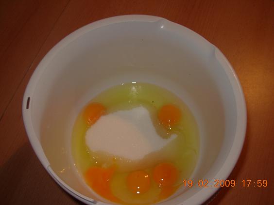 Eier mit Zucker in Schaum bringen,