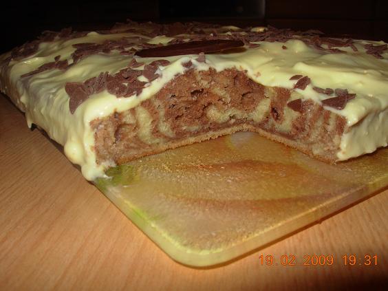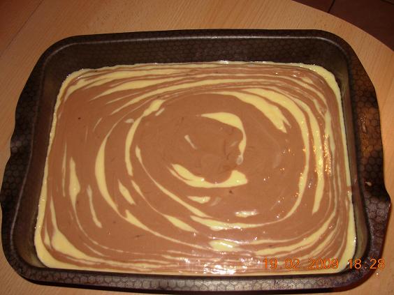 Backofen auf 180°C vorheizen, Backblech mit Öl fetten und erhitzen. Dann Teig auf 2 Hälfte teilen und in der eine Teil Kakao zugeben, in der andere Teil 2 EL Mehl und beide extra vermischen.