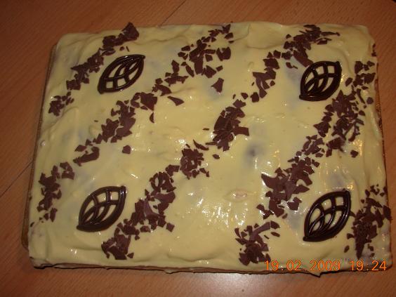 Fertige Torte mit Creme bestreichen und Nach Geschmack dekorieren.